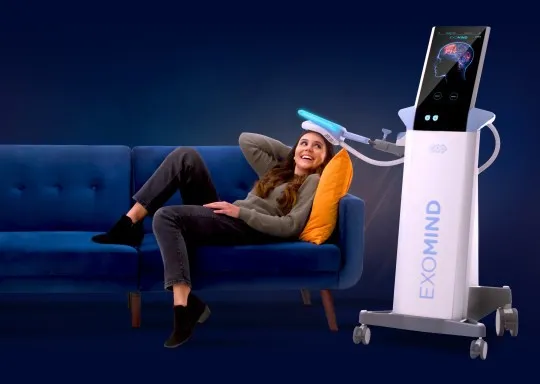 EXOMIND® uses patented ExoTMS® technology to gently stimulate key areas of the brain involved in mood, focus, and emotional regulation. Comfortable sessions under 30 minutes. No medication. No downtime.